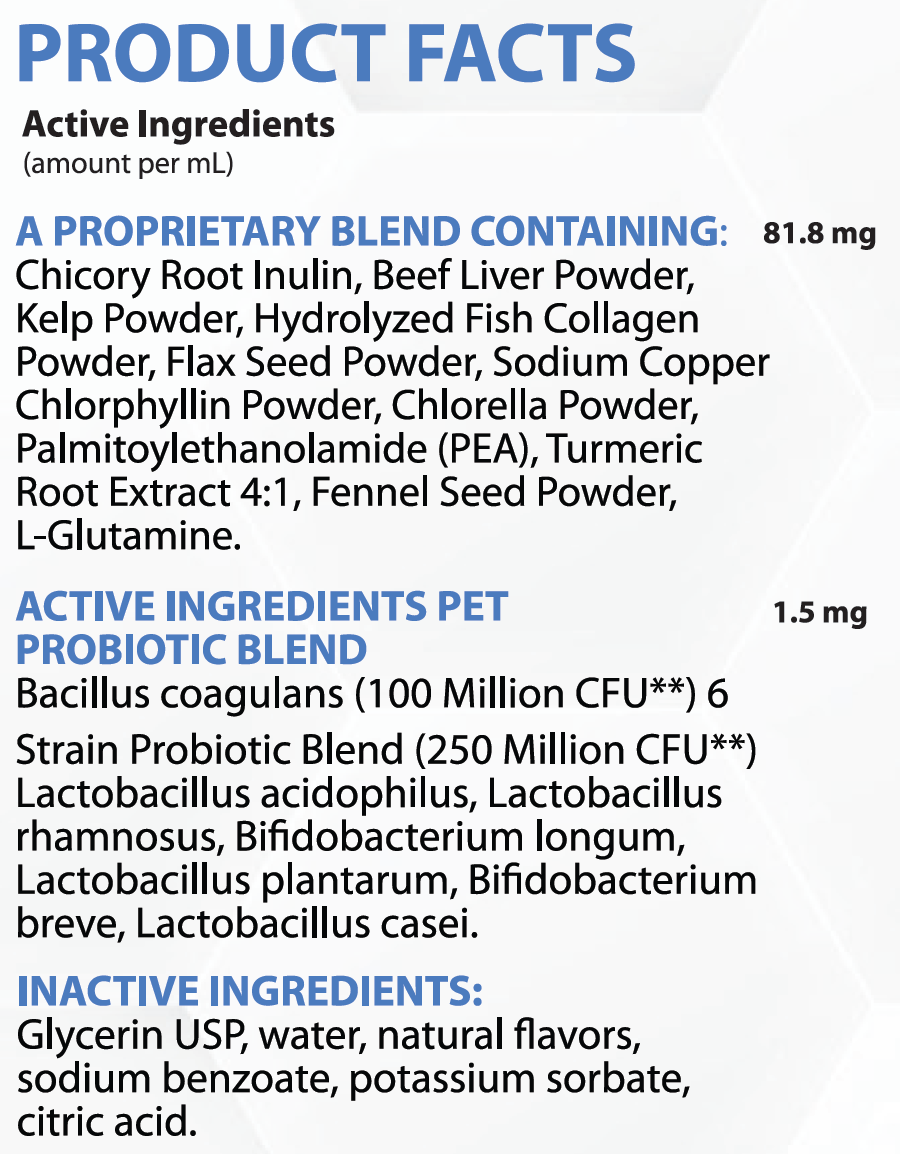 Simply add the recommended number of drops directly to your cat’s food once daily. The formula is liquid, virtually flavorless to most cats, and mixes seamlessly into wet or dry food — including prescription kidney diets. No syringes, no capsules, no fighting with your cat.